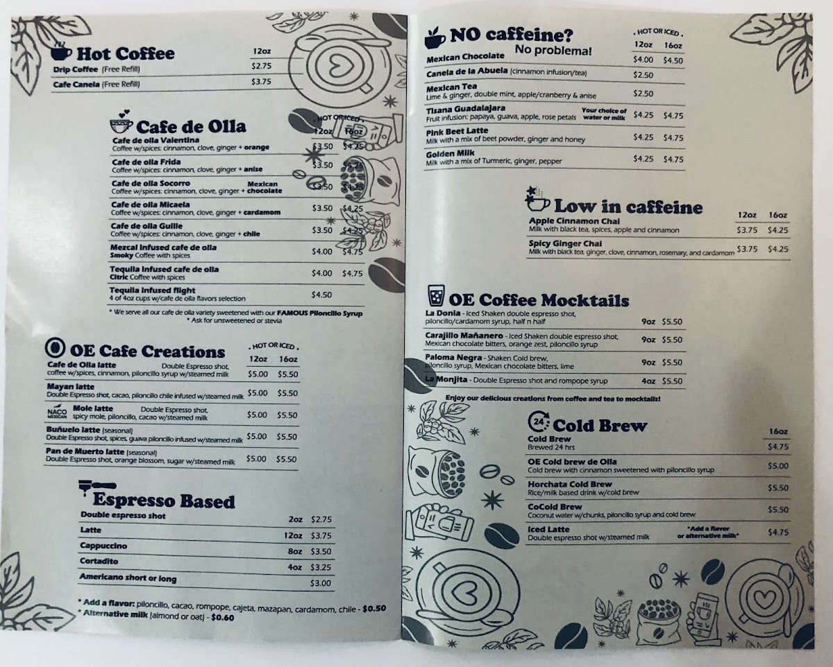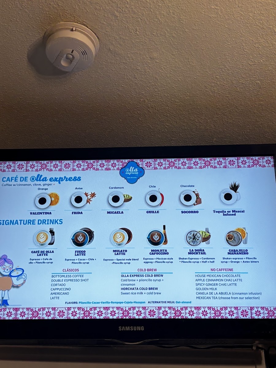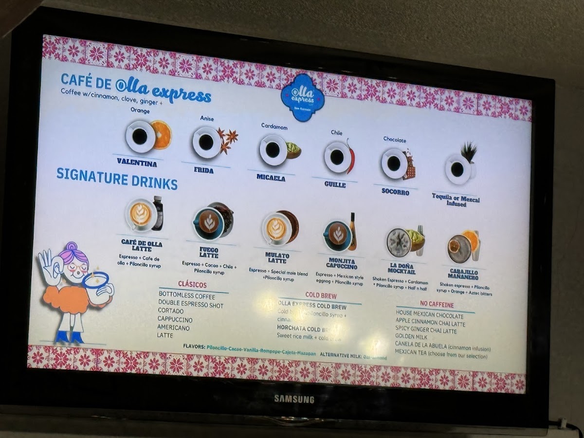 The menu at Olla Express Cafe offers a thoughtful selection of coffee and simple bites that feel both comforting and approachable. It’s a place where you can enjoy carefully crafted drinks that draw from traditional Mexican flavors, alongside light pastries and snacks designed to complement the cozy atmosphere.