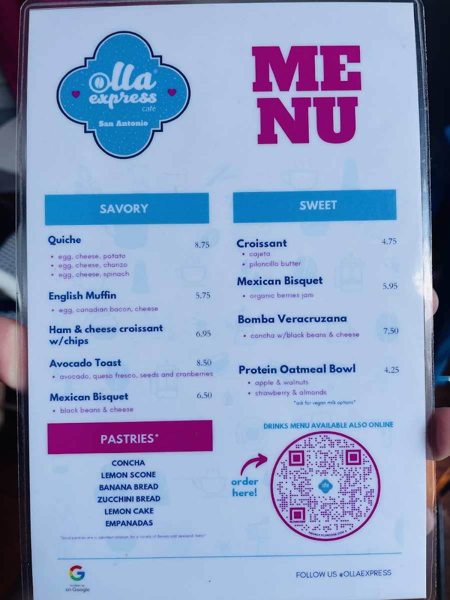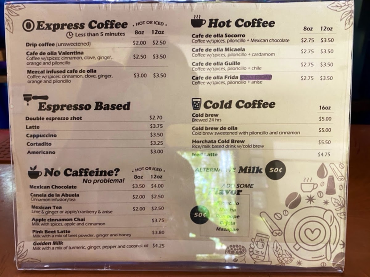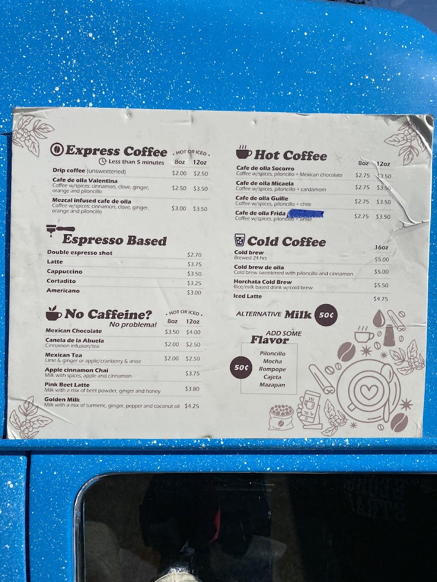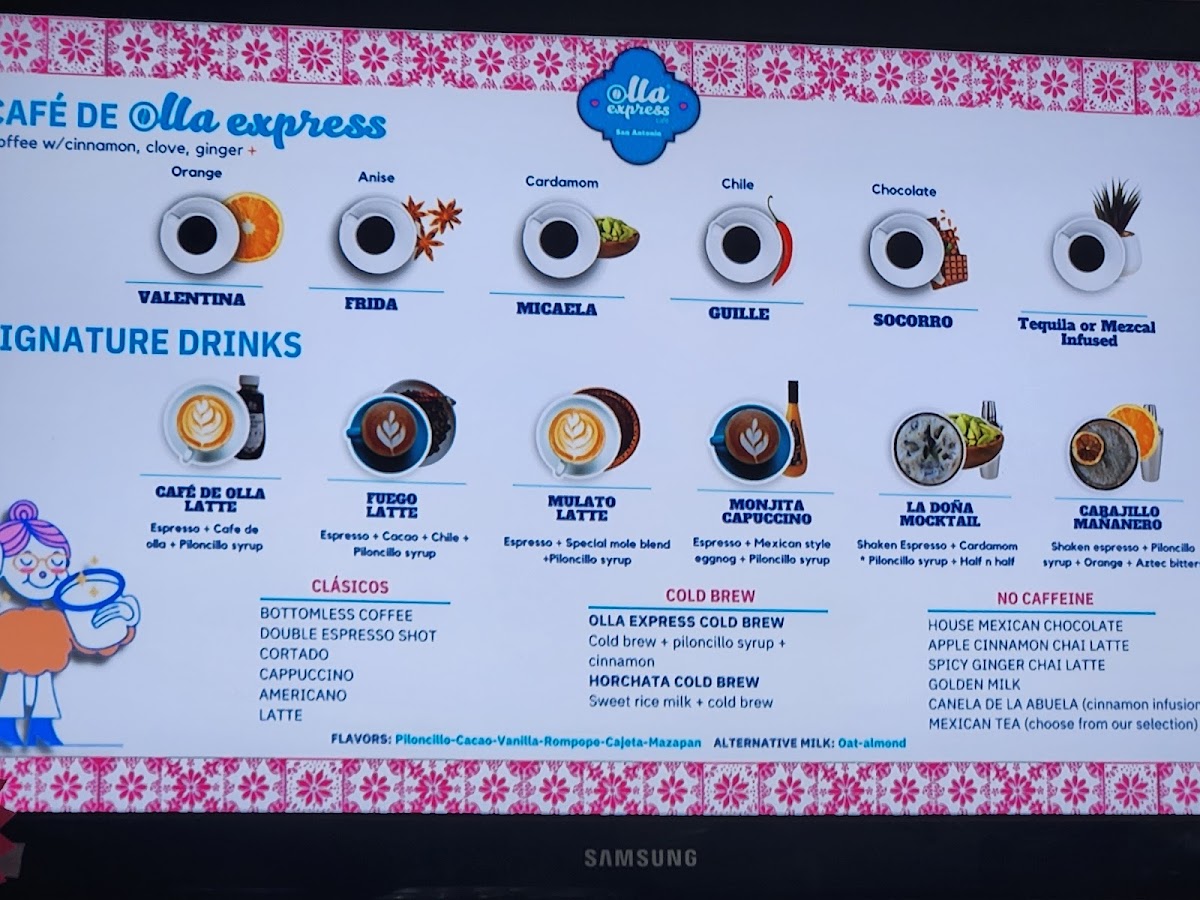 The menu at Olla Express Cafe offers a thoughtful selection of coffee and simple bites that feel both comforting and approachable. It’s a place where you can enjoy carefully crafted drinks that draw from traditional Mexican flavors, alongside light pastries and snacks designed to complement the cozy atmosphere.